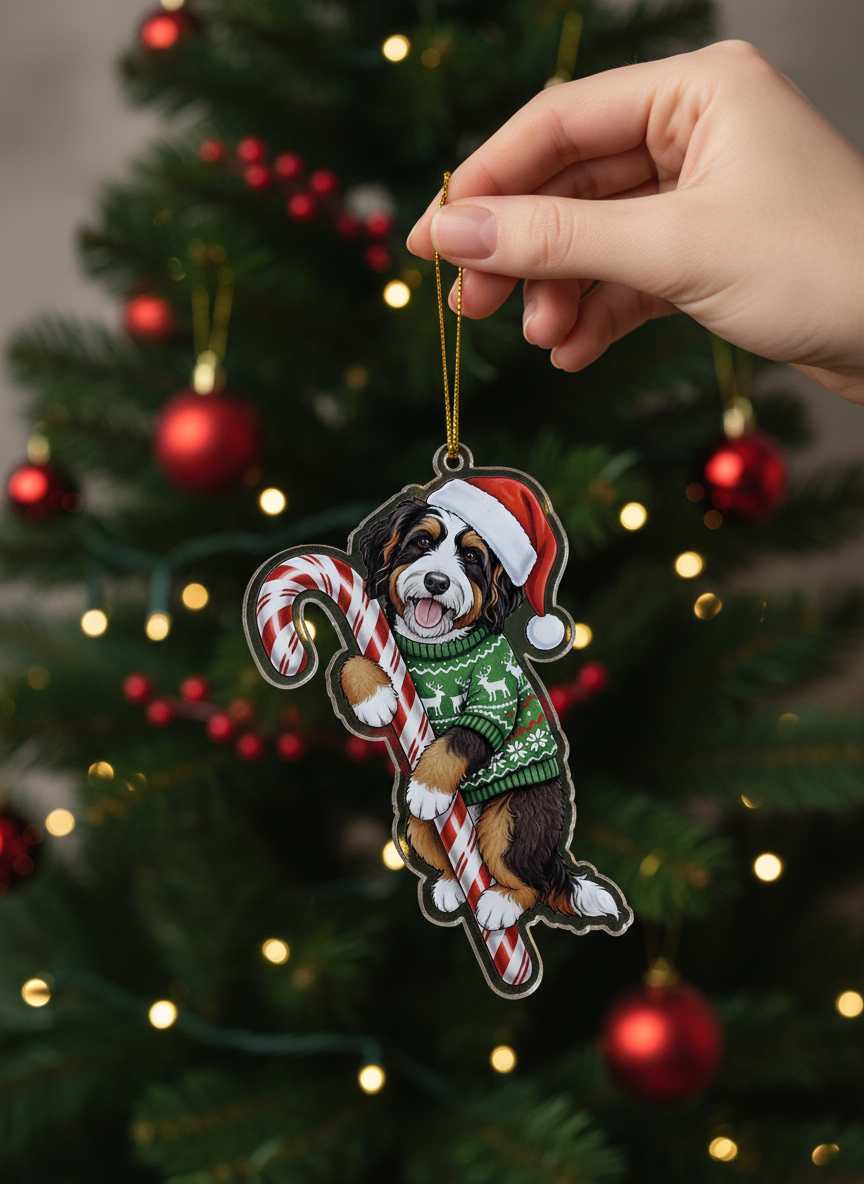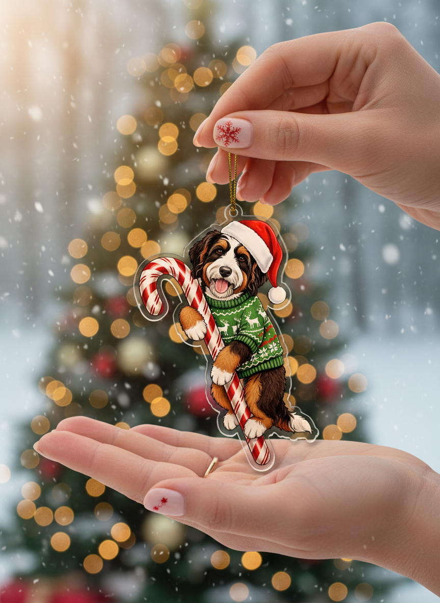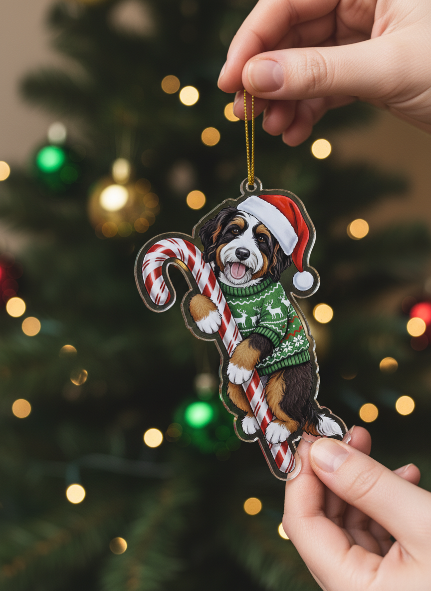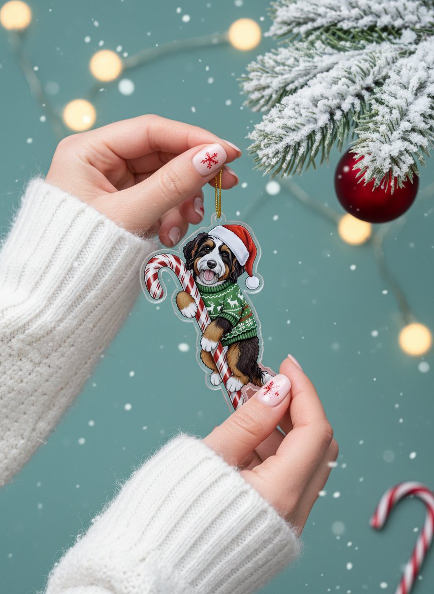 Select Options: Bernedoodle Christmas Ornament | Bernedoodle Hugging Candy Cane Ornament 2D Flat Acrylic Ornament | Christmas Tree Decoration, Gifts for Dog Lovers 2025