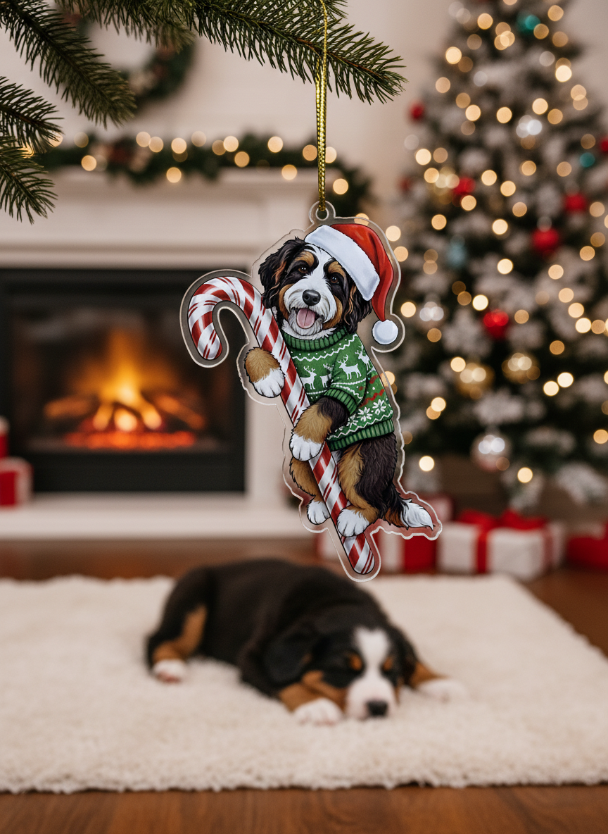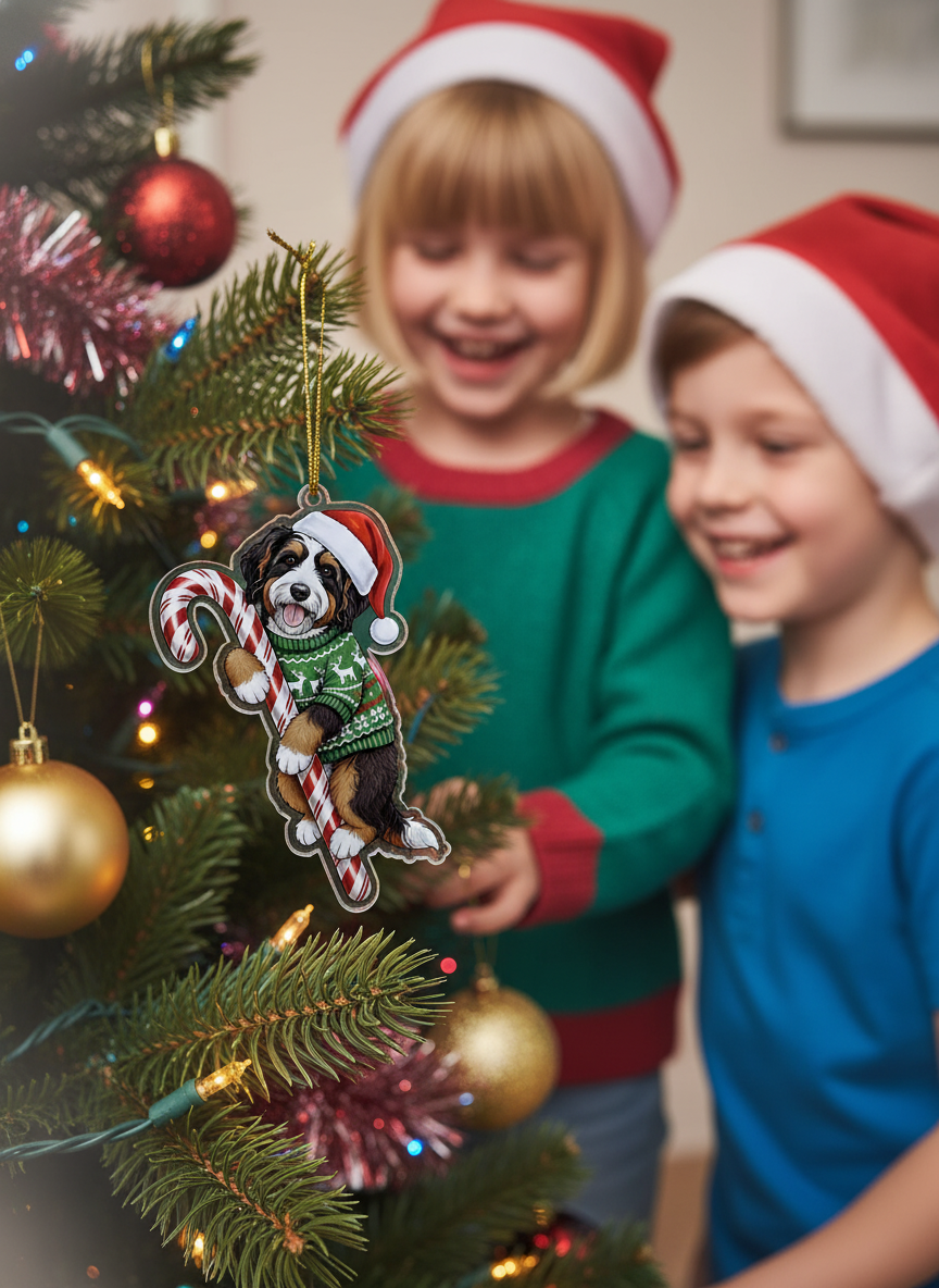 Bernedoodle Christmas Ornament | Bernedoodle Hugging Candy Cane Ornament 2D Flat Acrylic Ornament | Christmas Tree Decoration, Gifts for Dog Lovers 2025