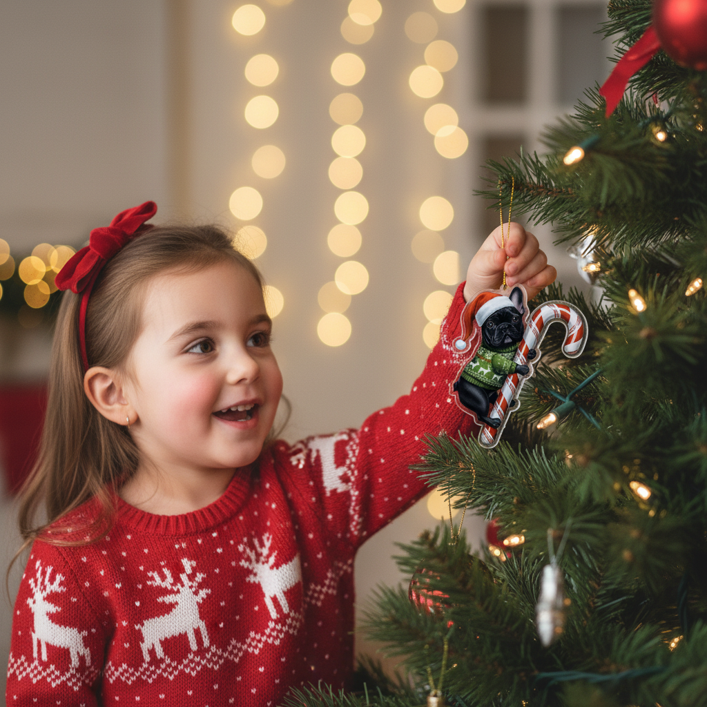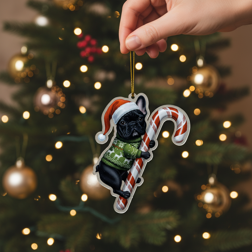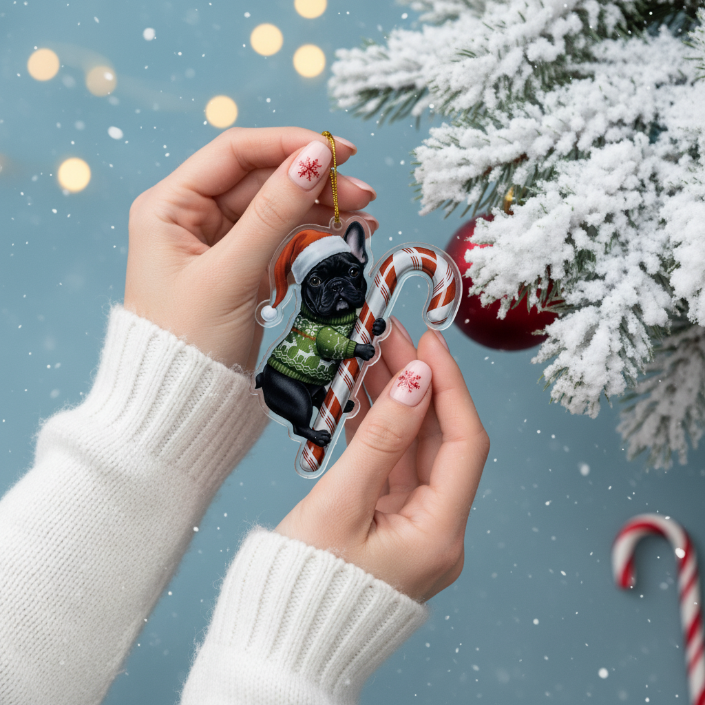 This adorable keycharm/hanging decoration features a beloved dog breed (or pet) dressed in festive attire: a classic Santa hat and a cozy holiday sweater, holding a traditional candy cane. It’s the perfect, heartwarming piece to hang on your Christmas tree, car rearview mirror, windows, or anywhere you want to showcase your pet pride and add a cheerful holiday spirit.