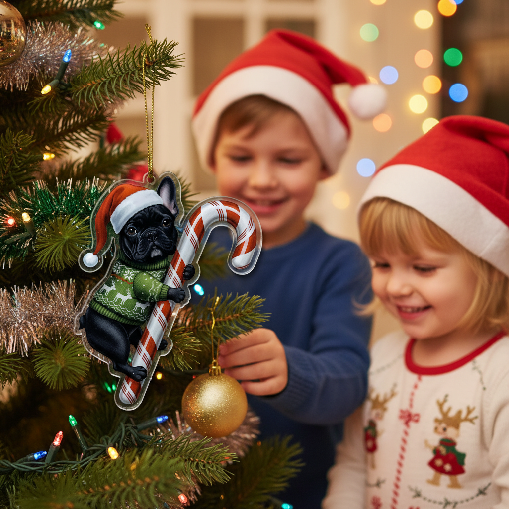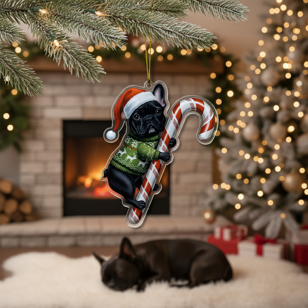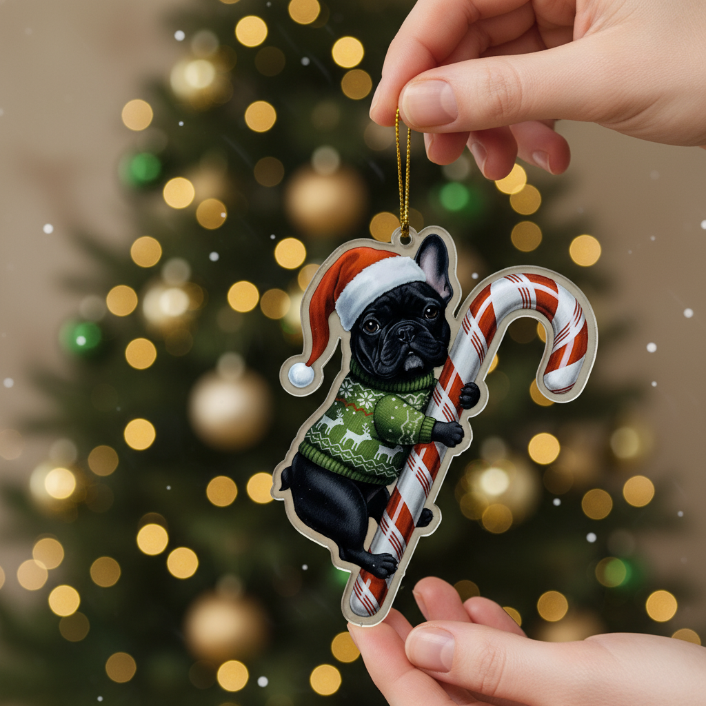 This adorable keycharm/hanging decoration features a beloved dog breed (or pet) dressed in festive attire: a classic Santa hat and a cozy holiday sweater, holding a traditional candy cane. It’s the perfect, heartwarming piece to hang on your Christmas tree, car rearview mirror, windows, or anywhere you want to showcase your pet pride and add a cheerful holiday spirit.