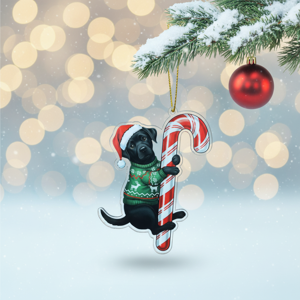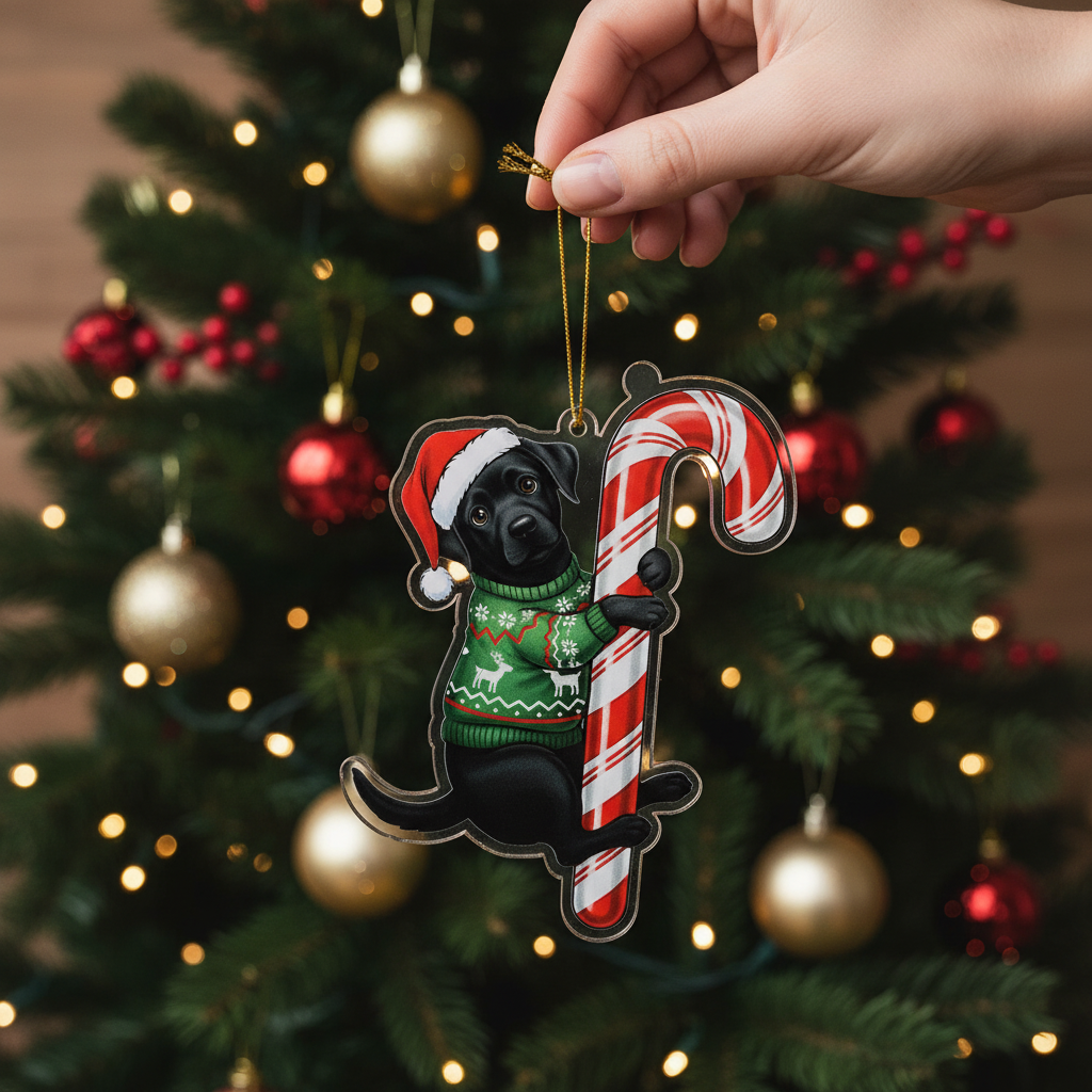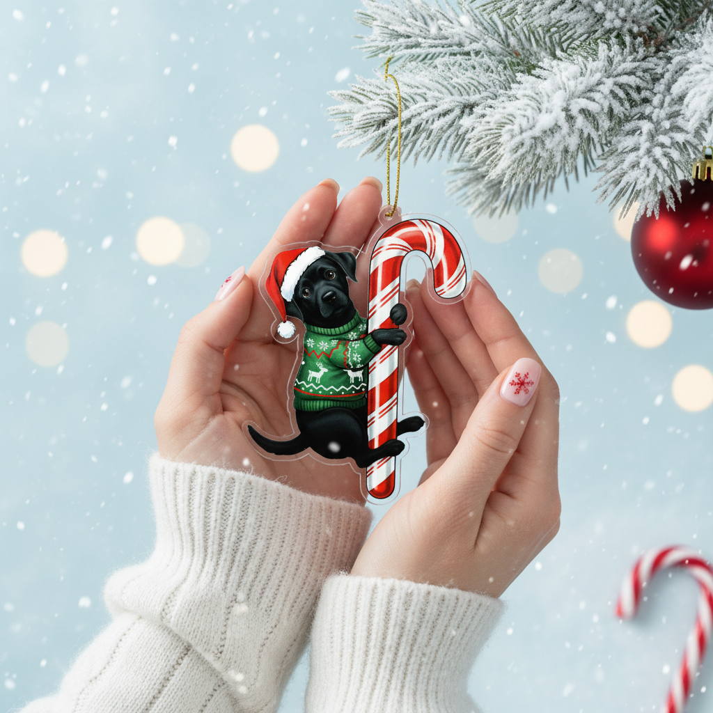 Select Options: Black Lab Hugging Candy Cane Ornament 2D Flat Acrylic Ornament - Christmas Tree Decoration, Gifts for Dog Lovers 2025