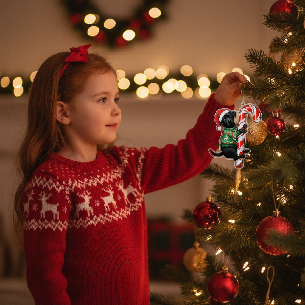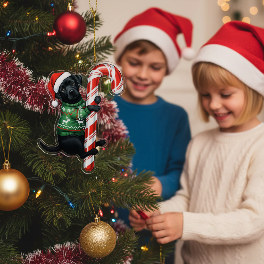 Black Lab Hugging Candy Cane Ornament 2D Flat Acrylic Ornament - Christmas Tree Decoration, Gifts for Dog Lovers 2025