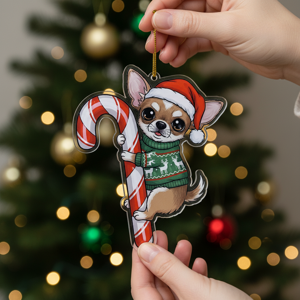 Select Options: Chihuahua Hugging Candy Cane Ornament 2D Flat Acrylic Ornament - Christmas Tree Decoration, Gifts for Dog Lovers 2025