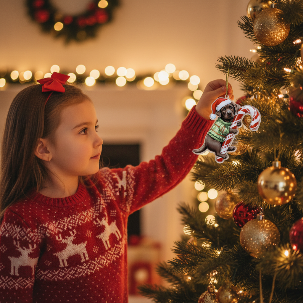 This adorable keycharm/hanging decoration features a beloved dog breed (or pet) dressed in festive attire: a classic Santa hat and a cozy holiday sweater, holding a traditional candy cane. It’s the perfect, heartwarming piece to hang on your Christmas tree, car rearview mirror, windows, or anywhere you want to showcase your pet pride and add a cheerful holiday spirit.