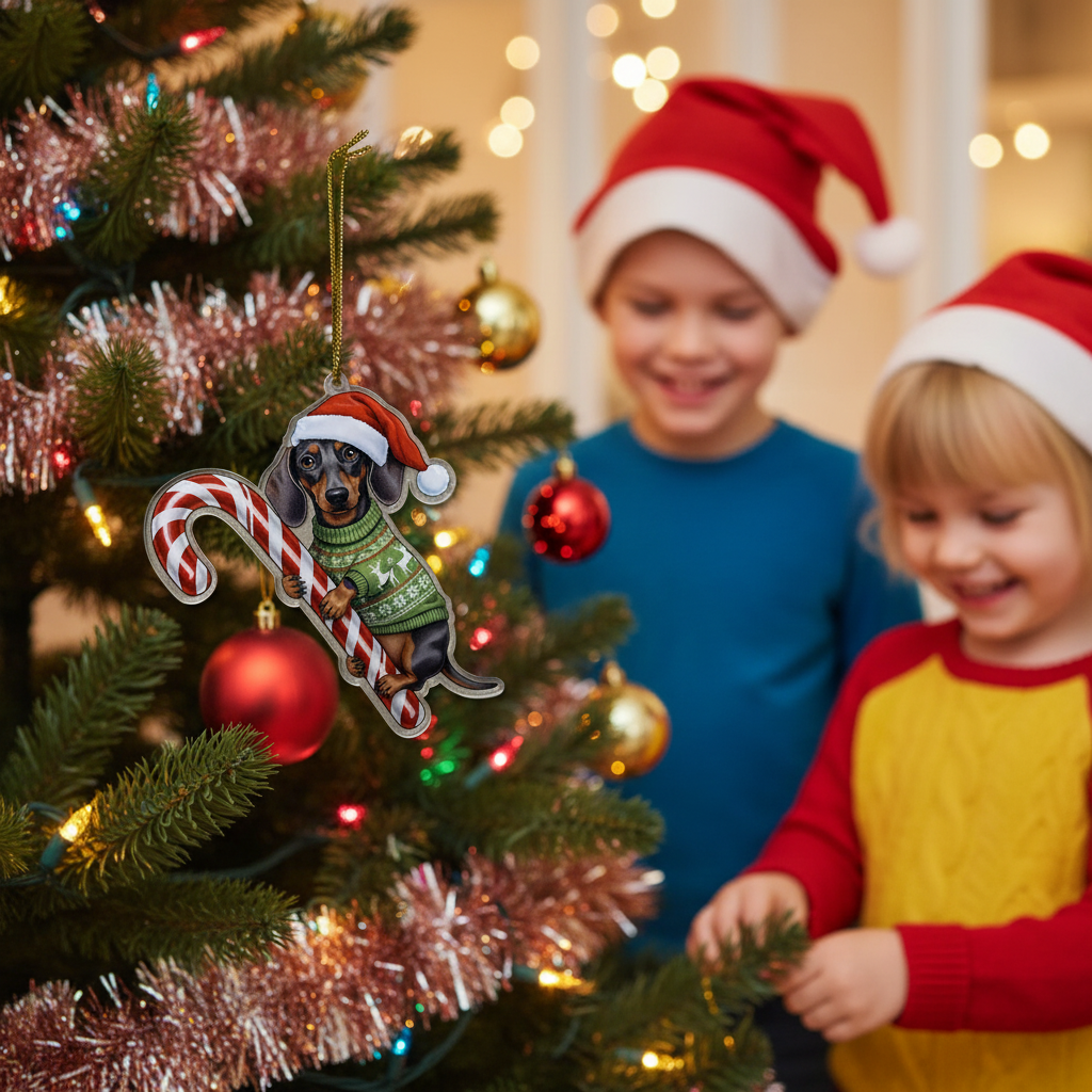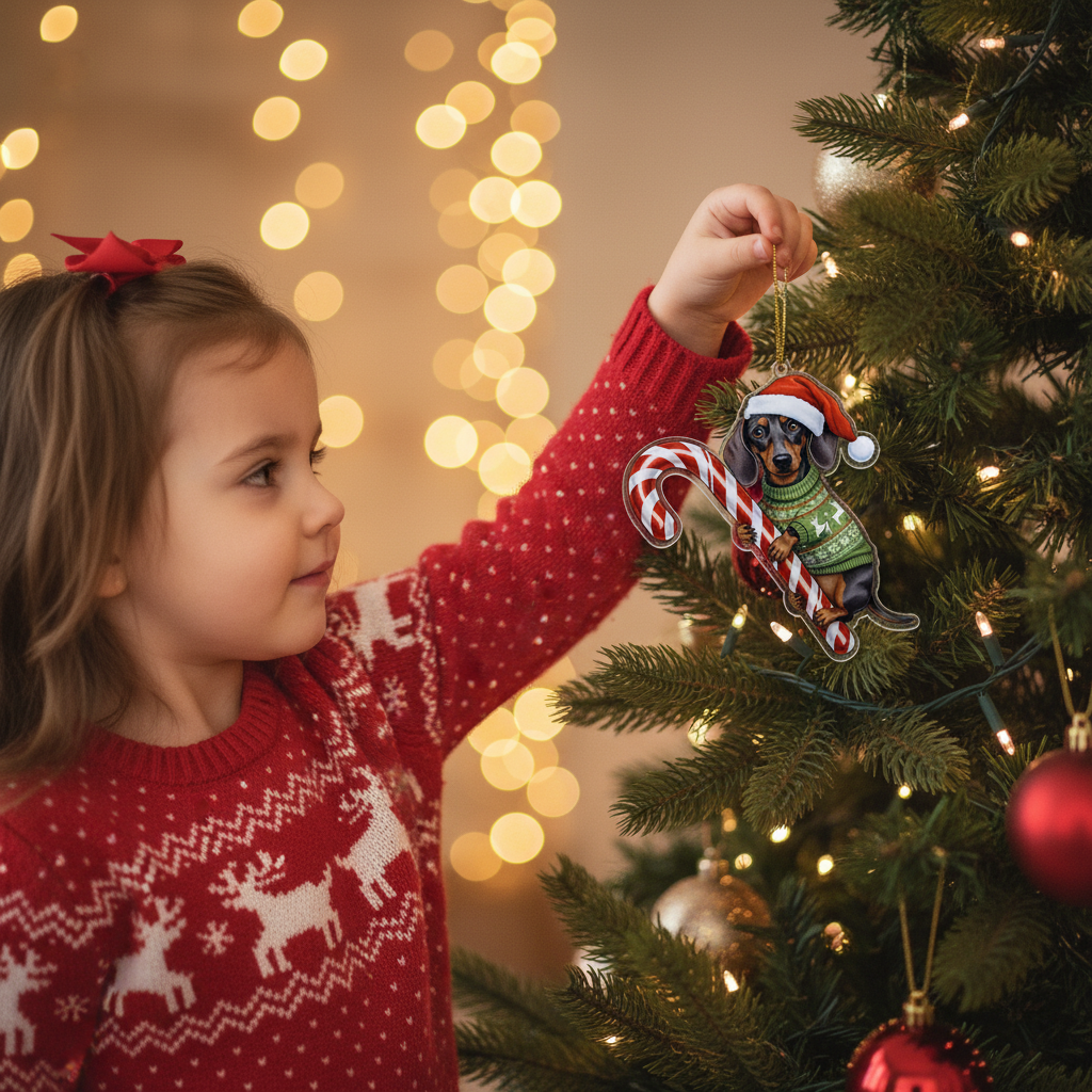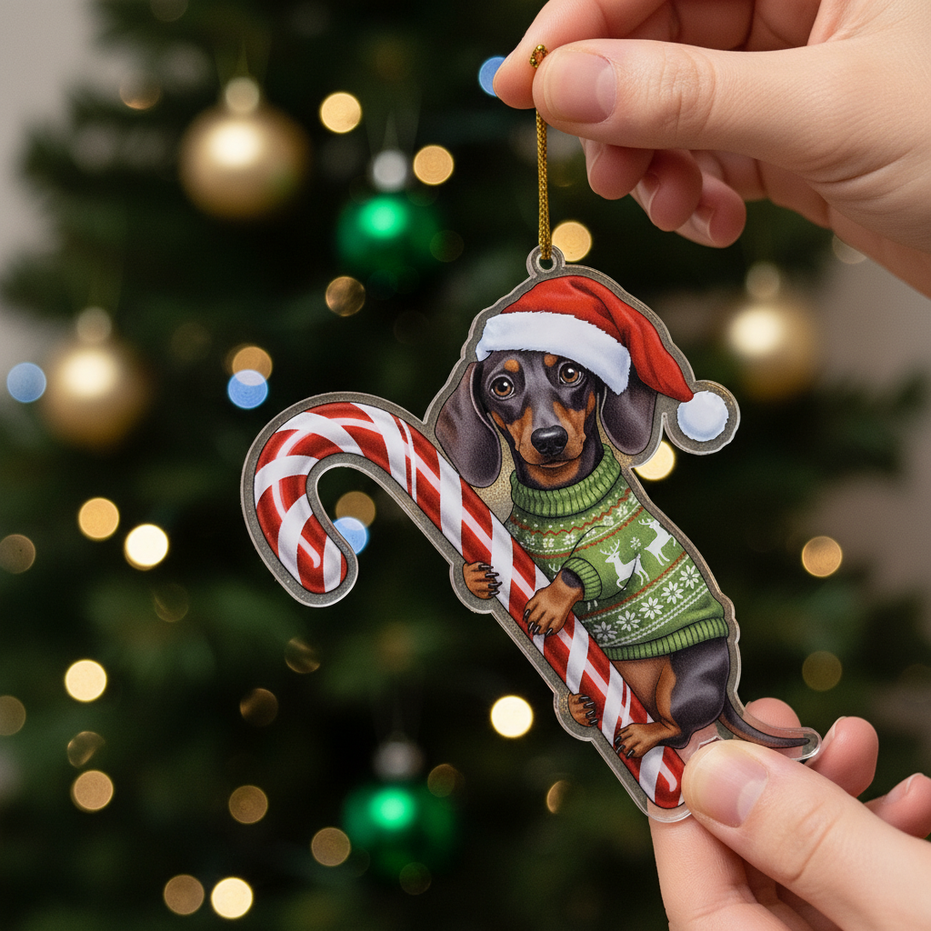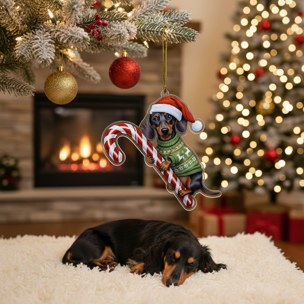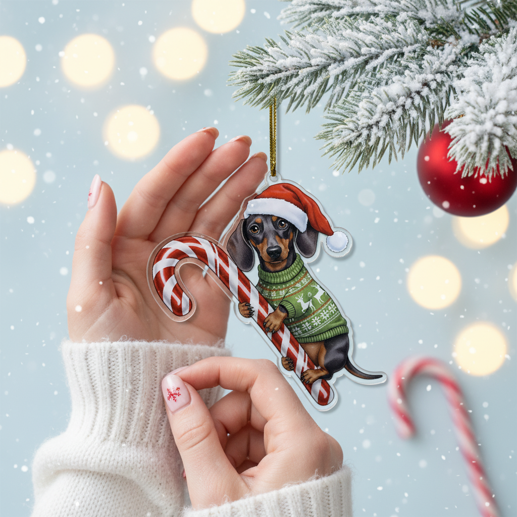 Select Options: Dachshund Black Tan Hugging Candy Cane Dachshund Gifts for Women 2D Flat Acrylic Ornament - Christmas Tree Decoration, Gifts for Dog Lovers 2025