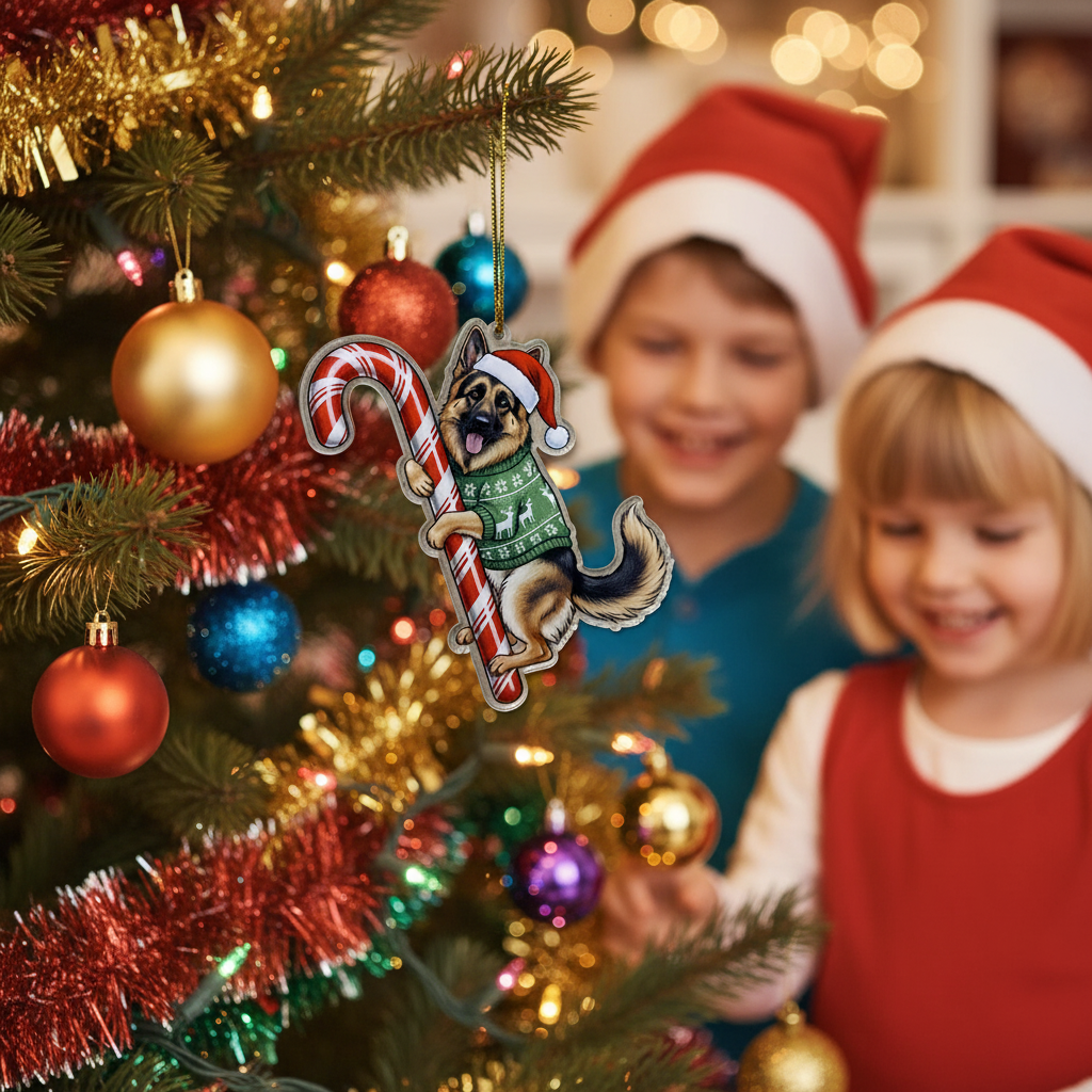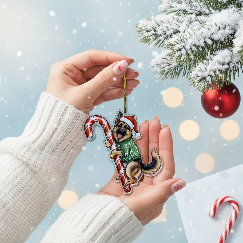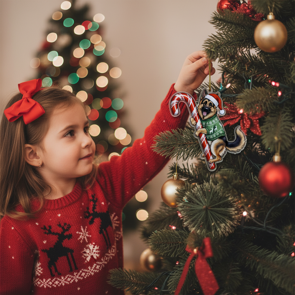 This adorable keycharm/hanging decoration features a beloved dog breed (or pet) dressed in festive attire: a classic Santa hat and a cozy holiday sweater, holding a traditional candy cane. It’s the perfect, heartwarming piece to hang on your Christmas tree, car rearview mirror, windows, or anywhere you want to showcase your pet pride and add a cheerful holiday spirit.